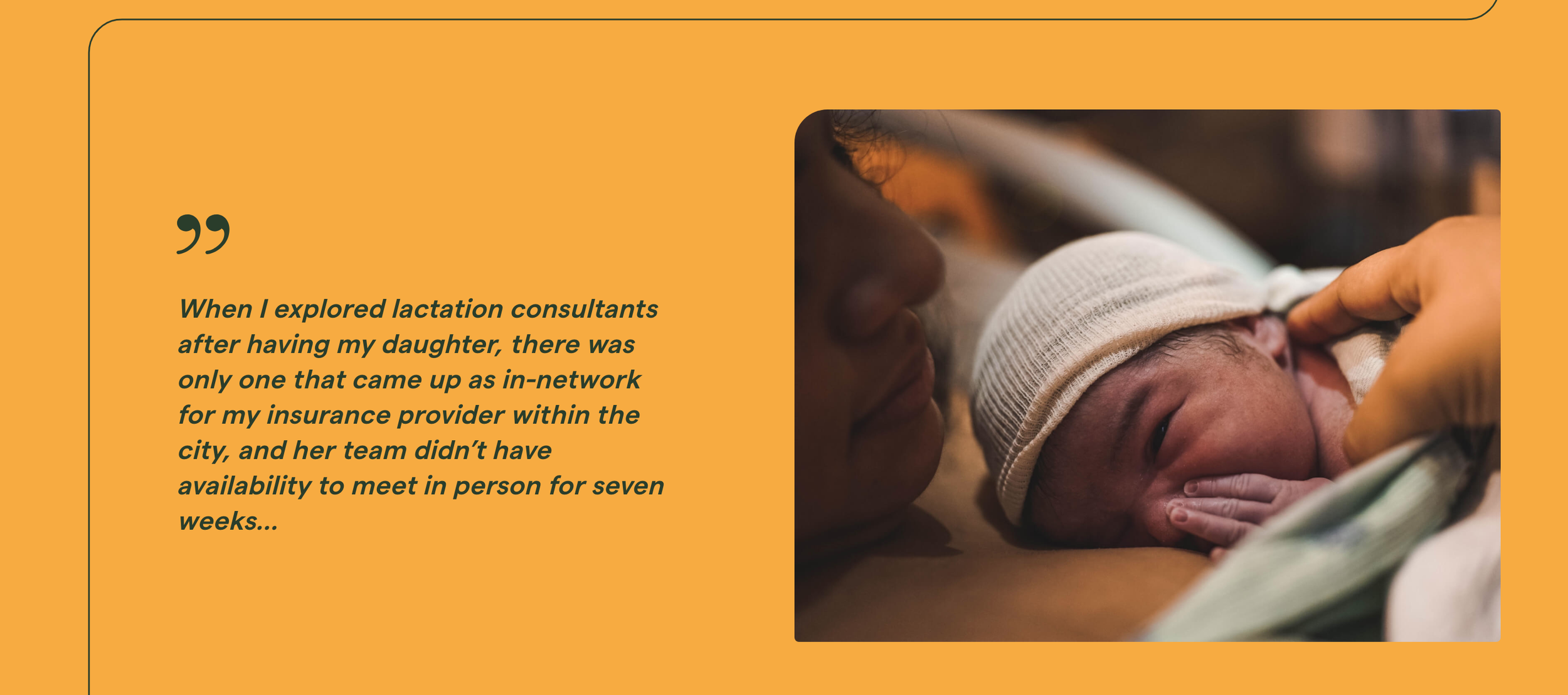 Caption: There is an illusion of lactation coverage. Although many health plans claim to provide lactation care, we know that the families they claim to cover are often confronted with a different, difficult reality. We are looking to #CloseTheLactationCoverageGap by advocating for families in conversations directly with health plans and in legislative efforts on Capitol Hill. When we raise our voice in unison, we can’t be ignored—make your voice heard and sign the petition in our bio.